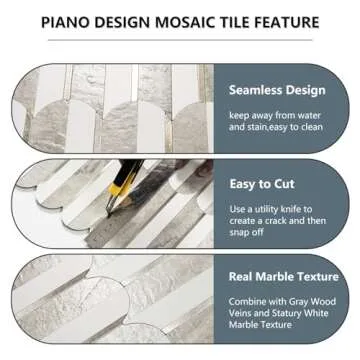 Vamos Peel and Stick Backsplash Seamless Tile for Kitchen and Bathroom,White and Beige Slate PVC Mixed Light Gold Self Adhesive Fish Scale Metal Mosaic Tiles (10 Sheets)