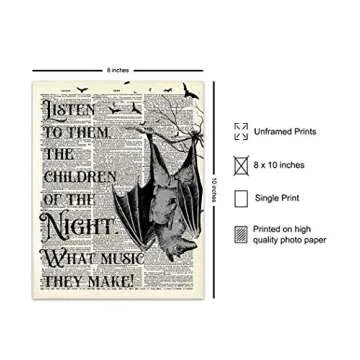 Show moreTransform your living space with our stunning Vampire Bats Wall Decor, featuring a captivating quote from the iconic Bram Stoker's Dracula. This exquisite 8x10 unframed print perfectly captures the essence of gothic home decor, making it a standout piece in any room. Crafted with a keen eye for detail, this poster art combines eerie charm with vintage allure, making it suitable for a variety of aesthetic tastes. Its unique design adds a gothic flair to your office, living room, bedroom, or even a man cave, serving as a conversation starter and an impressive decor statement.