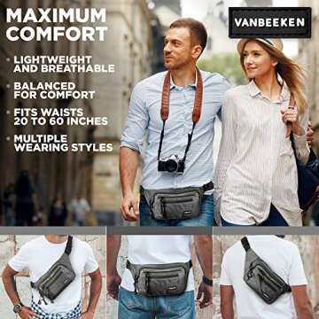 What sets the VAN BEEKEN Fanny Pack apart from competitors like Carryfair is its superior organizational features. Unlike other brands that offer limited compartments, this fanny pack comes with multiple zippered pockets, including a secure back pocket to enhance safety and accessibility. The quality of the waterproof material is a significant upgrade compared to other options, ensuring your valuables stay dry in wet conditions. Furthermore, users have reported increased comfort with the adjustable straps, giving this product a competitive edge over others.