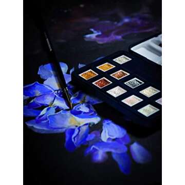 The set includes 12 exquisite colors, featuring metallic shades like silver, light gold, and copper, alongside interference colors that transform with shifting light, adding a magical element to any artwork. The interference colors meld beautifully with darker backgrounds and can be used to create stunning effects on various mediums, ensuring your art stands out.