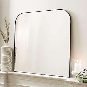 VANA NALA 34x40'' Large Matt Black Arched Mantel Mirror Rounded Corner Wall Mirror for Bathroom, Living Room or Powder Room