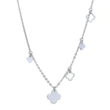 Show moreDiscover elegance redefined with the Vanbelle Sterling Silver 4 Clover Multi Charm Pendant Necklace. Handcrafted to perfection with exquisite attention to detail, this necklace features a stunning 10x10.35mm disc pendant adorned with a unique clover motif that beautifully symbolizes luck and prosperity. Crafted from premium 0.925 sterling silver and rhodium-plated, it resists tarnishing while retaining its brilliant shine. This thoughtful design is complemented by a 16” long chain, equipped with a 2” extender, allowing you to customize the length to perfectly fit your neckline. Whether for a casual day out or a sophisticated evening occasion, this necklace adds an instant touch of glamour to any outfit. Perfect as a gift for yourself or a loved one, it arrives beautifully packaged in a Vanbelle signature gift box, making every unboxing a delightful experience. Embrace your inner elegance with this exquisite piece of handcrafted jewelry that speaks volumes about style and character.