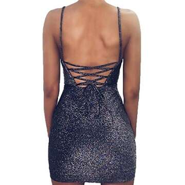 Show moreIntroducing the VANCOL Women's Sexy Glitter Spaghetti Straps Lace Up Back Bandage Bodycon Mini Club Party Dress, a stunning fashion statement designed for the bold and beautiful! This exquisite dress combines luxurious materials and intricate details to create a captivating look that's perfect for any night out. Crafted from a blend of Spandex and Polyester, it features a mesmerizing glitter fabric that shines brightly, ensuring you stand out in any crowd. The dress is characterized by its elegant straight neckline, sleek sleeveless design, and alluring open back with criss-cross bandage detailing, giving it a unique flair that's both chic and sophisticated.