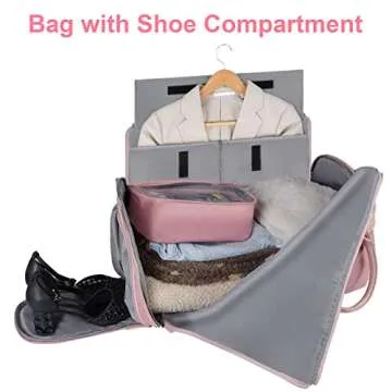 Vancropak Convertible Carry on Garment Bag for Women, Travel Garment Duffle Bag with Toiletry Bag & Shoe Compartment, 2 in 1 Travel Carrier with Shoulder Strap, Large Dress Weekender Suitcase, Pink