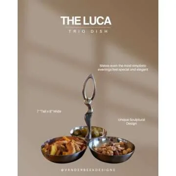 Show more Introducing the Vanderbeek Designs Stainless Steel Trio Snack Serving Dish—a true masterpiece that brings both style and functionality to your table. Crafted from high-quality 304 stainless steel, this stunning 3-compartment bowl not only serves your favorite snacks but also enhances your kitchen or dining decor with its elegant and modern design. With an artistic silhouette that catches the eye, this dish stands as a sophisticated centerpiece at any gathering, showcasing your culinary delights with exceptional flair.