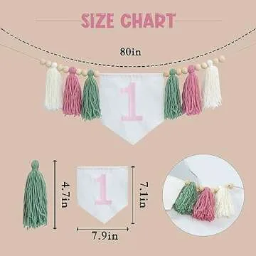 VANGNING Girl 1st Birthday High Chair Banner - Greenery Birthday Decoration, Light Pink Girl's Birthday, Yarn Tassel Garland, Cake Smash Backdrop Banner,Spring Colours Garland (Pink Tassel)
