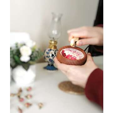 Vanilla Scented Handmade All Natural Soy Candle -10x3 cm Decorative Wooden Bowl with Dried Flowers & Wicker Mat by PAFULI (Pink 1)