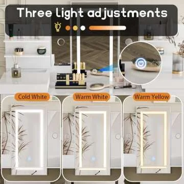 Vanity Desk with Mirror and LED Lights - Makeup Vanity with Open Storage Shelvesand 8 Drawers, 3 Color Lighting Modes Adjustable Brightness, 57" Vanity Table with Women Girls