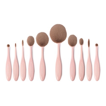 The kit includes 10 brushes of varying sizes, each designed for specific makeup applications.