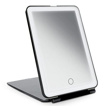 Show more Unleash your inner beauty guru with the Vanity Planet Mini Pose LED Travel Mirror in stunning Onyx (Black). This sleek, compact mirror is designed for the modern beauty enthusiast on-the-go, featuring three adjustable LED light settings—bright white, warm yellow, and cool blue—perfect for any makeup application or grooming needs. Whether you are at home, in a hotel, or getting ready for a night out, this travel-friendly mirror ensures you always look your best. With its self-standing design and slim profile measuring just 7.5 x 5.0 inches, it easily fits in your bag, making touch-ups effortlessly chic.