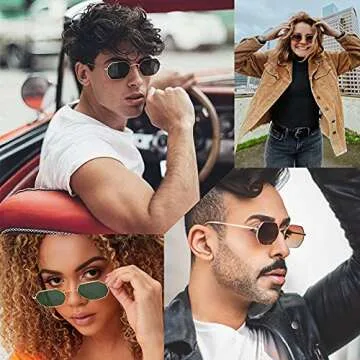 VANLINKER Polarized Hexagon Gold Metal Sunglasses for Women Men Polygon Sunnies Green Lens