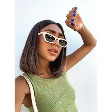 VANLINKER Polarized Small Trendy Skinny Cat Eye Sunglasses Women Retro Tiny Square Shade White