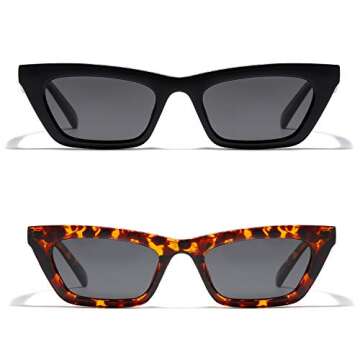 VANLINKER Polarized Small Trendy Skinny Cat Eye Sunglasses Women Retro Tiny Square Shade 2 Pack Black/Tortoise