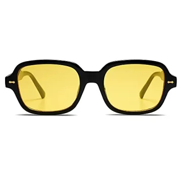 Show more Step into a vibrant world with the VANLINKER Trendy Rectangle Yellow Sunglasses, a perfect blend of retro chic and modern functionality. These stylish sunglasses are designed for women who want to make a statement while ensuring their eyes are shielded from harmful UV rays. The bold yellow lenses not only enhance visual clarity but also add a pop of color to your outfits, making you stand out in every crowd. With their unique 90's square silhouette and sleek black frame, these sunglasses reflect an effortlessly cool aesthetic that is equally ideal for summer days at the beach or casual outings around town.