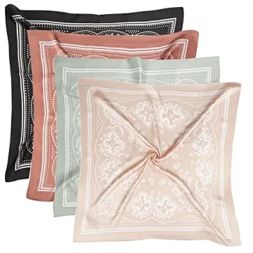 VANLINKER Vintage Bandanas Square Multi-Purpose Scarfs for Men Women Silk Like Scarf Neckerchief Protective Coverage VL9549 Black,Caramel,Green,Oatmeal