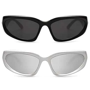 Show more Introducing the stunning sporty sunglasses from Vanlinker, the perfect blend of style, comfort, and protection. These sunglasses have made a grand comeback, featuring a sleek and futuristic design that not only enhances your outfit but also makes a bold fashion statement. Whether you're enjoying a sunny day outdoors or partying at a festival, these sunglasses are crafted to elevate your look while providing ultimate UV protection.