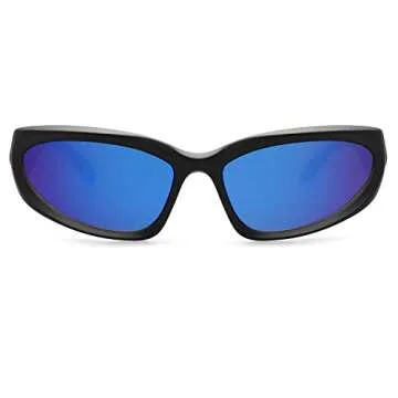 VANLINKER Wrap Around Sport Sunglasses for Women Trendy Fashion Shades Black Frame Blue Lens