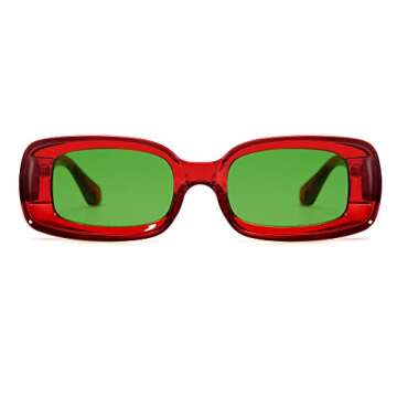 VANLINKER Y2K Trendy Rectangle Sunglasses for Women Men Retro Fashion 90s Glasses Thick Square Frames UV400 Protection VL9673 Red frame Green lens Christmas color