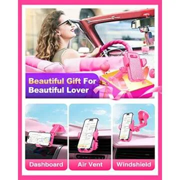 VANMASS Universal Car Phone Mount,【Patent & Safety Certs】 Upgraded Handsfree Dashboard Stand, Phone Holder for Car Windshield Vent, Compatible iPhone 14 13 12 11 Pro Max Xs XR X, Galaxy (All Pink)