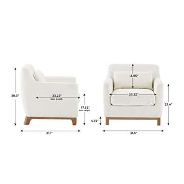 VANOMi Extra Deep Accent Chair, Fabric Upholstered Comfy Reading Armchair for Living Room, Bedroom Single Seat Sofa Chair with Wood Base, Lamb Fabric