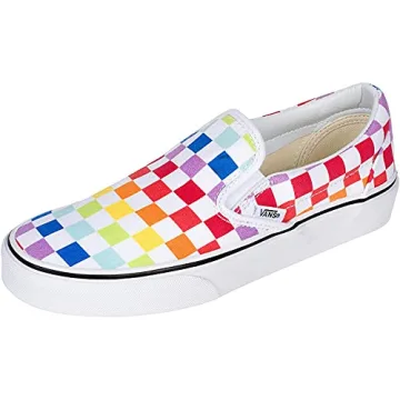 Show more Embrace the vibrant spirit of adventure with the Vans Men's Stockings, Checkerboard Rainbow True White 7267. These trendy slip-on shoes are designed for those who want to make a statement without sacrificing comfort. Crafted from a poly blend upper, the shoes feature a classic checkerboard pattern adorned with an eye-catching rainbow design, perfect for adding a splash of color to any outfit. Designed especially for ease, the slip-on closure ensures you’re ready to hit the streets in no time. Defined by their soft, fabric lining and durable rubber sole, these Vans offer not only style but assured comfort for all-day wear.