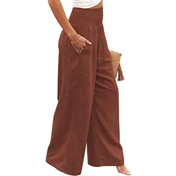 Vansha Women Summer High Waisted Cotton Linen Palazzo Pants with Pocket Coffee S