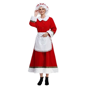 VAPICK Women's Christmas Costume 5PCS Mrs Claus Outfit (XX-Large)
