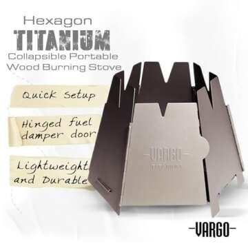 Vargo Titanium Hexagon Wood Stove | Collapsible Portable Wood Burning Stove | Ultra Lightweight Compact Wood Stove for Backpackers & Outdoor Explorers T-415