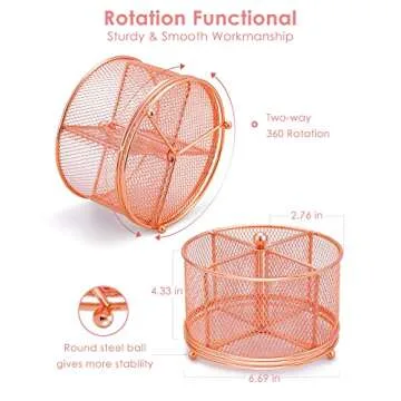 Varhomax Pencil Holder Rose Gold, 360° Rotating Desk Organizer and Makeup Brush Pen Holder for Home Office Supplies, 4 Compartments Mesh Organizer with Large Storage Capacity