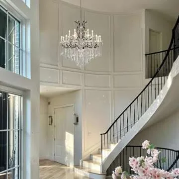 VARTTYAL 40" Crystal Chandeliers 18-Light Large Foyer Chandeliers for High Ceilings, Black Staircase Chandeliers Big Entryway Maria Theresa Chandeliers Living Room Light Fixture for Stairway, Entry