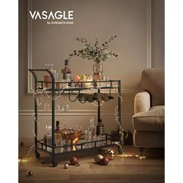 The VASAGLE Bar Cart isn't just about space; it's designed to keep your delicate stemware and prized wines safe and fresh. Featuring 2 rows of glass holders and 4 dedicated wine holders, this cart provides a secure and stylish way to store and showcase your glassware and wine bottles. No more worries about accidental spills or breakages before your romantic dinners or entertaining evenings.