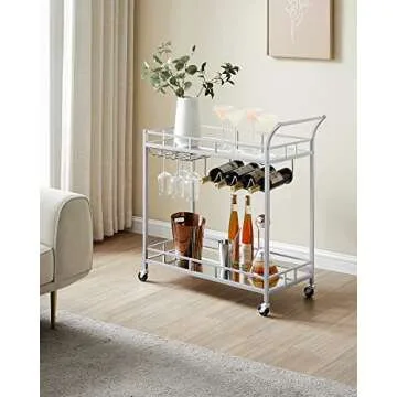 Compared to many standard bar carts, the VASAGLE Bar Cart Silver stands out with its superior design features. Many competitors might offer basic shelves without specialized glass and wine holders, leaving your drinkware vulnerable to damage. Additionally, the combination of mirrored surfaces and an elegant frame sets this cart apart from basic designs that lack aesthetic appeal. Moreover, its ease of assembly and mobility make it a more user-friendly option than others that require complicated installation or lack wheel-based movement.