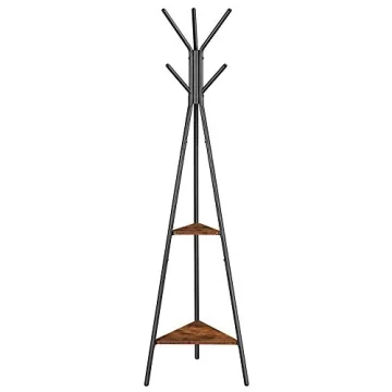 Show more Transform your entryway or living space with the VASAGLE Coat Rack, a perfect blend of elegance and functionality. Designed with a sleek, industrial aesthetic, this freestanding coat hanger stand is not just another piece of furniture but a statement of style. With its unique triangular silhouette and rustic brown surfaces, it brings warmth and character to any decor. Whether it's for your home or for your office, this coat rack is meticulously crafted to provide exceptional stability and utilitarian space for organizing your essentials.