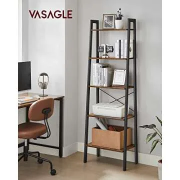 VASAGLE Ladder Shelf, 5-Tier Bookshelf, Storage Rack, Bookcase with Steel Frame, Wood Look Accent Furniture with Metal Frame, 22.1 x 13.3 x 67.7 Inches, Rustic Brown ULLS45X