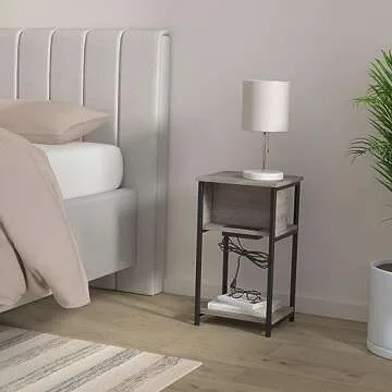 VASAGLE Side Table with Charging Station, 3-Tier End Table with USB Ports and Outlets, Nightstand for Living Room, Bedroom, 11.8 x 13.4 x 22.8 Inches, Plug-in Series, Greige and Black