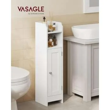 VASAGLE Small Bathroom Storage Corner Floor Cabinet with Door and Shelves, Bathroom Storage Organizer, Narrow Bathroom Toilet Paper Storage Cabinet, Adjustable Shelves, White UBBC310W01