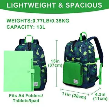 VASCHY Toddler Kids Backpack - Lightweight & Water Resistant with Fun Dino Design