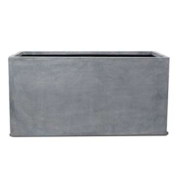 Show more Transform your indoor and outdoor spaces with our stunning Planter Pots that boast a timeless modern appearance and exceptional quality. Crafted from durable fiberglass, these planters promise to provide a lasting home for your cherished plants and flowers. With dimensions of 24 inches high, 12 inches wide, and 42 inches long, they are spacious enough to accommodate various plant types while adding a touch of elegance to your decor. The sleek rectangular design not only enhances the aesthetic appeal but also makes it a perfect fit for any setting, whether in your home office, store, or lobby.