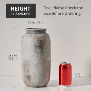 Show moreIntroducing the Vaseking Ceramic Farmhouse Vase, a stunning addition to your home decor that combines elegance with functionality. Crafted with long-lasting high-quality terracotta, this large vintage-inspired vase stands at an impressive 11.5 inches tall and 5.8 inches wide, making it the perfect statement piece for any room. It features a beautifully rustic design that seamlessly blends with a variety of decor styles, including boho, modern farmhouse, rustic, and cottagecore. The watertight construction ensures that this vase can hold fresh flowers, dried florals, or stand proudly on its own, adding timeless charm to your space year after year.
