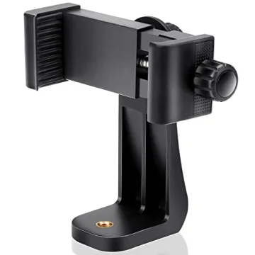 Featuring a sleek and robust design, this holder is compatible with smartphones that measure 2.3 to 4 inches wide. It effortlessly attaches to standard tripods, selfie sticks, and monopods using a universal 1/4 inch screw interface, ensuring that you can capture every moment with unparalleled ease. The adjustable screw mechanism allows for seamless adjustments, providing a full 360-degree rotation to switch between portrait and landscape orientations.