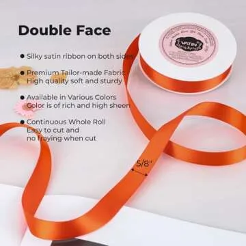 VATIN Double Face Autumn Orange Satin Ribbon 5/8" Continuous 25 Yards,Orange Polyester Fabric Ribbon use for Bows Bouquet, Gift Wrapping, Floral Arrangement Wedding Decoration