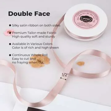 Show more If you're looking for the perfect addition to your crafting toolbox, look no further than this exquisite Satin Ribbon. This ribbon is designed for both the creative novice and the seasoned artisan, offering a blend of versatility and quality that simply can't be matched. With a generous size of 1/2 inch in width and a continuous length of 50 yards per spool, you’ll have ample material to bring your visions to life. The high-quality polyester fabric boasts a beautiful double-faced satin finish that adds a touch of elegance to any project, ranging from gift-wrapping to intricate bridal bouquets.