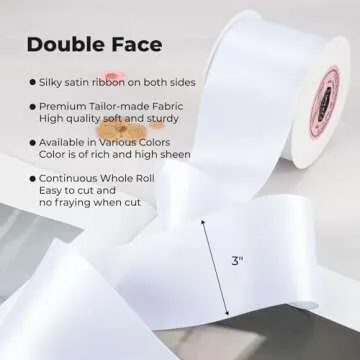 VATIN Double Face White Satin Ribbon 3" Continuous 10 Yards,White Polyester Fabric Ribbon use for Bows Bouquet, Gift Wrapping, Floral Arrangement Wedding Decoration