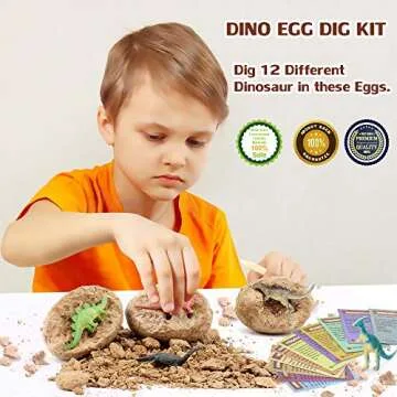 VATOS Dinosaur Eggs Dig Kit 12 Pack,Discover 12 Different Dinos, Easter Eggs Archaeology and Paleontology Toy Dino Egg Excavation Kit STEM Toys for 6,7,8,9 Year Old Boys Girls Kids Gift (DGK-12)