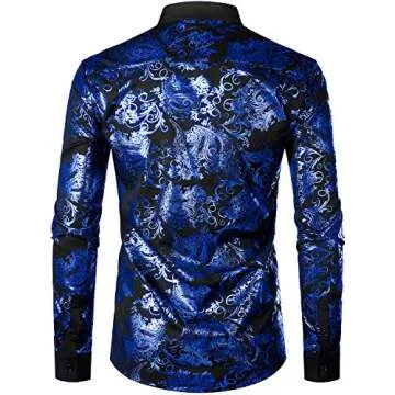 VATPAVE Mens Casual Luxury Print Dress Shirts Paisley Long Sleeve Button Down Shirts Medium LC09 Blue