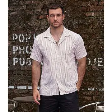 Show moreThe VATPAVE Men's Striped Summer Shirt is the epitome of stylish comfort for every modern man. Crafted from 100% premium cotton, this shirt delivers a lightweight, breathable experience, making it perfect for warm days and casual outings. Featuring a cuban collar and slim fit design, this short-sleeve button-down not only provides an effortlessly stylish look but also keeps you cool while you enjoy the sun. The unique seersucker texture adds character to the fabric, ensuring you stand out in a crowd while feeling at ease.