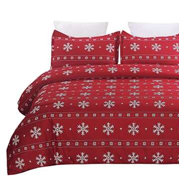 Vaulia Lightweight Microfiber Duvet Cover Set, Snowflake Pattern Design for Christmas New Year Holidays, Red Color - Queen Size