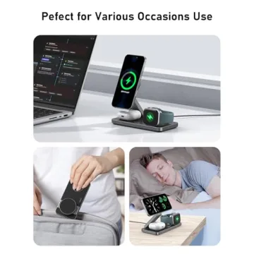 Discover the power of convenience with the VBA 3 in 1 Wireless Charging Station, a versatile solution designed to simplify your charging needs without compromising style. This innovative and compact charging station is meticulously crafted to wirelessly charge your iPhone, Apple Watch, and AirPods simultaneously, making it a must-have for Apple enthusiasts. Designed with portability in mind, it folds down to the size of an iPhone 16, ensuring it seamlessly fits into your bag for travel or...