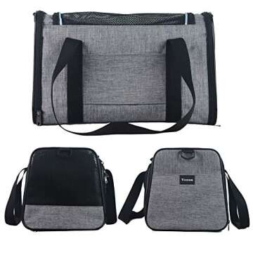 Show moreTraveling with your beloved pets has never been easier or safer than with the Vceoa Airline Approved Pet Carrier. Meticulously designed for both functionality and comfort, this soft-sided travel carrier is perfect for medium to large-sized puppies and cats. Crafted with high-quality, durable materials, it features a lightweight yet sturdy frame that meets the strict regulations for airline travel, ensuring that you and your furry friend can journey with peace of mind. Its innovative collapsible design makes it incredibly easy to store when not in use while providing a comfortable space for your pet when you're on the go.