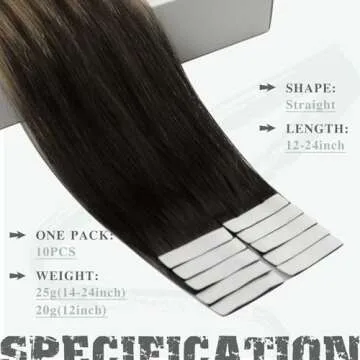 Ve Sunny Tape in Extensions Human Hair Black Balayage Tape in Hair Extensions Natural Black Ombre Dark Brown with Ash Brown Tape Hair Extensions Long Hair 10pcs 25g 24inch
